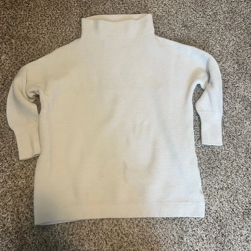 white ribbed cotton Free People sweater. Long sleeve. Features a plush, textured surface with elegan... Show more