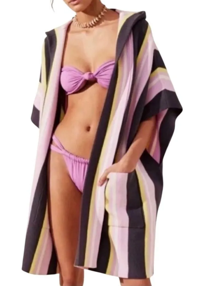 Free People All I Need Hoodie Pink & Yellow Stripe Poncho. NWOT