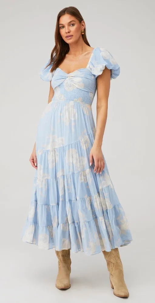 FREE PEOPLE SUNDRENCHED SHORT-SLEEVE MAXI DRESS Size small