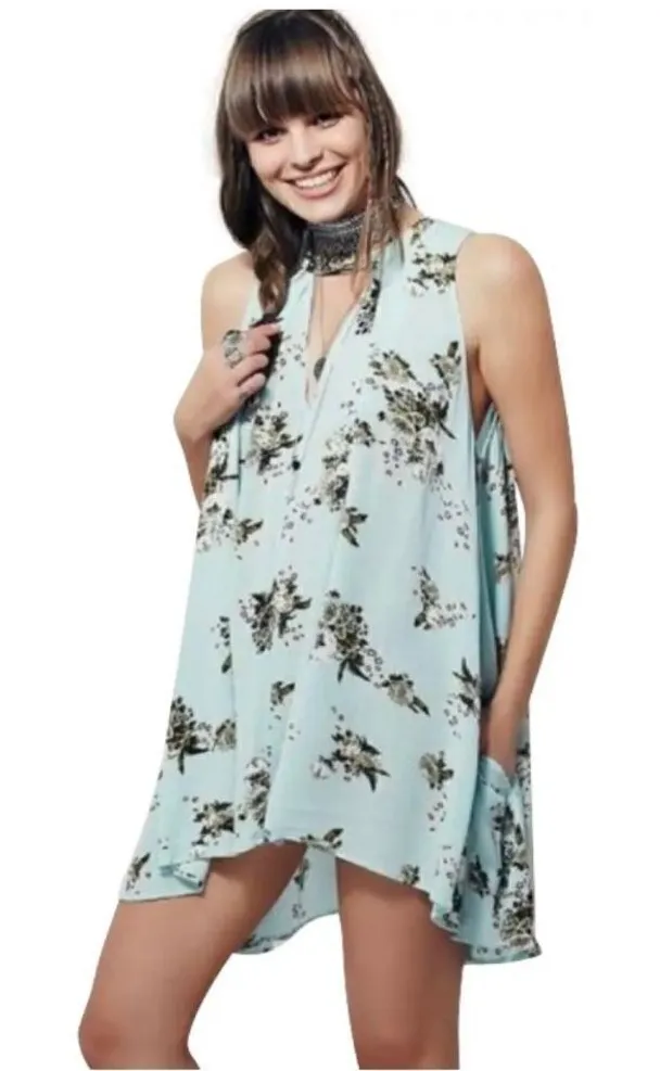 Free People Tree Swing Sleeveless Tunic/dress Mint Green floral a single button at the throat v-n... Show more