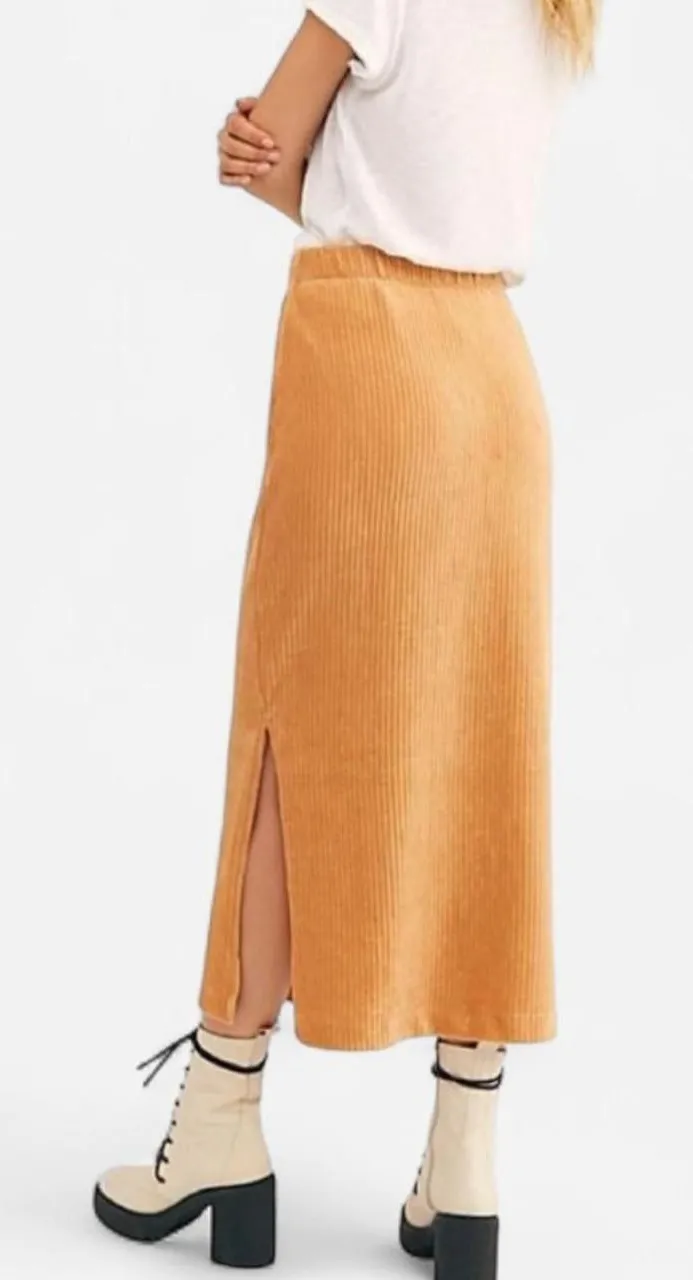 Free People Helen Rib Tube Midi Skirt – Tan Corduroy Core (XS) High-rise ribbed tube midi skirt in... Show more