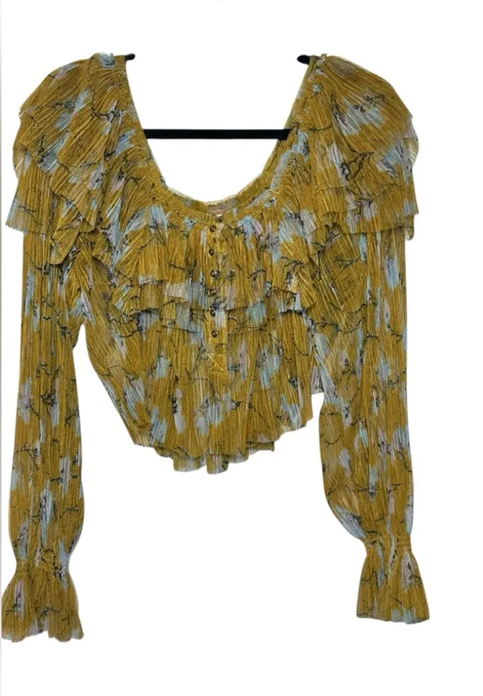 Free People Frills and Thrills Ruffled Semi Sheer Button Front Long Sleeve SZ S. This top is stunni... Show more