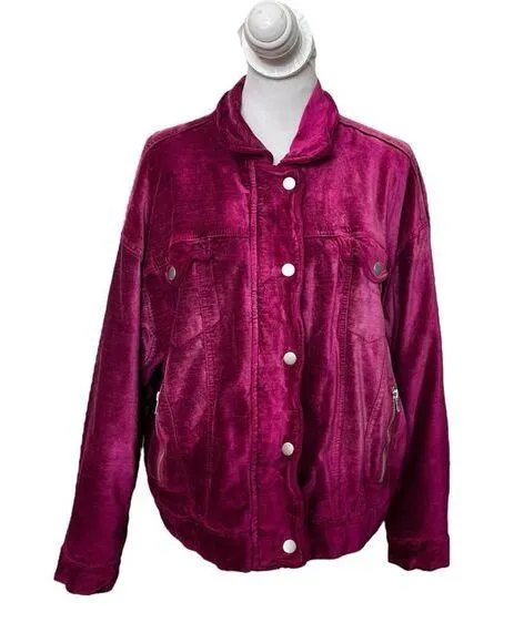 Free People Fuchsia Pink Luxe Velvet Trucker Jacket Oversized Womens Size XS/S FLAWED The Velvet Tr... Show more
