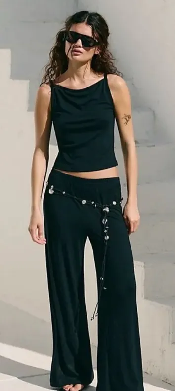 Simple and so comfy, this pant set from free-est features a classic tank with wide-leg pull-on pants... Show more