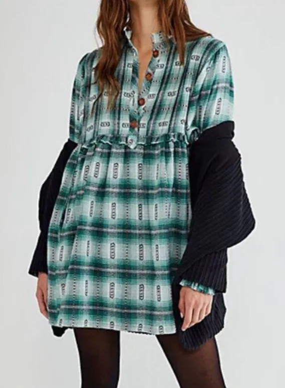 Excellent used condition! 100% cotton in a thick quality flannel. Half button mini dress with plaid... Show more