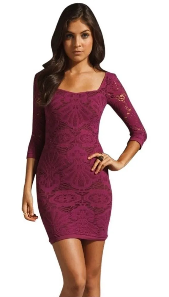 ✨ Premium Denim HP 11-9-22✨ Free People Magenta Crochet Lace Seamless Medallion Bodycon 3/4 Sleeve S... Show more
