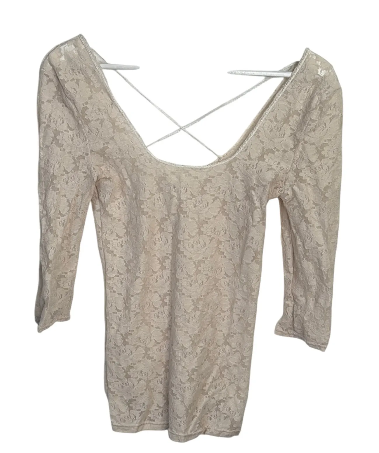 Free People Intimately Lace Cream 3/4 sleeve Square Neck Top Very good condition! Underarm to under... Show more