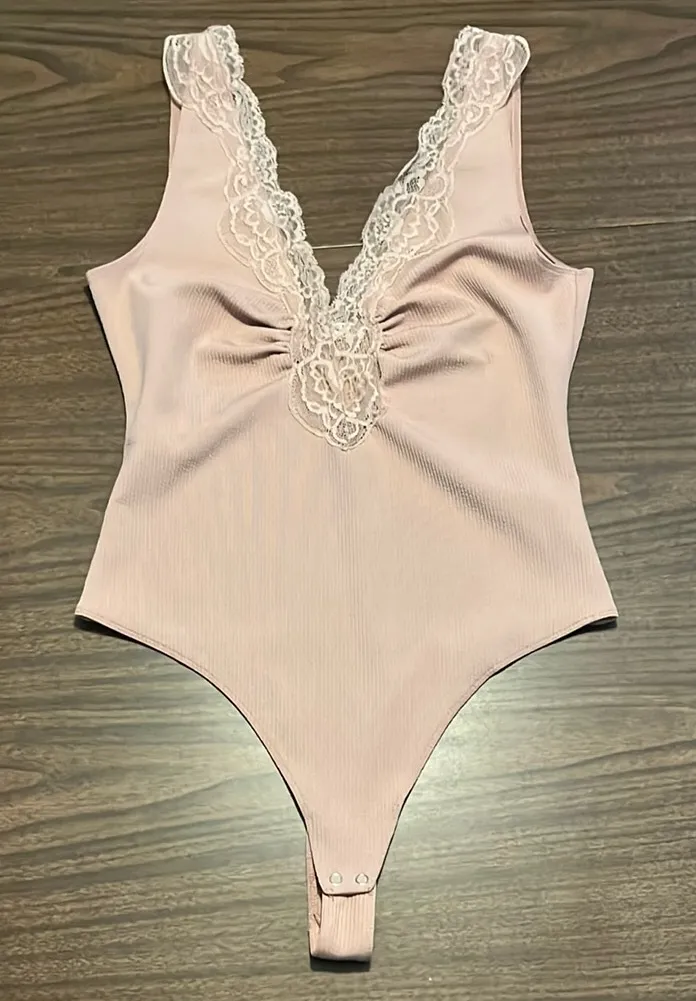Clean and in great condition Set a sultry tone in this shapely sleeveless bodysuit topped with a pl... Show more