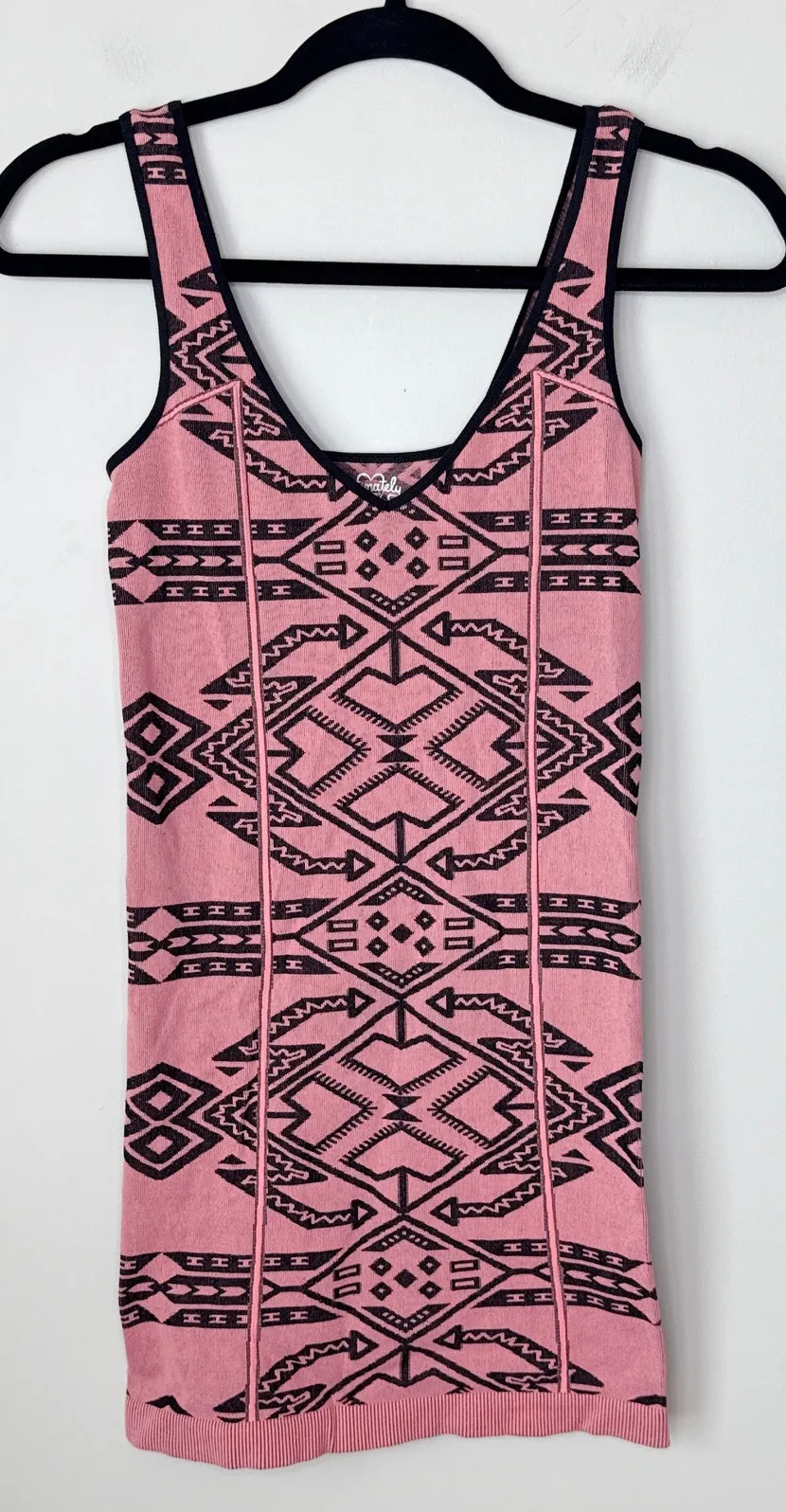 Free People Intimately Pink Aztec Mini Tank Dress Size M/L * pullover styling * back features cut-o... Show more