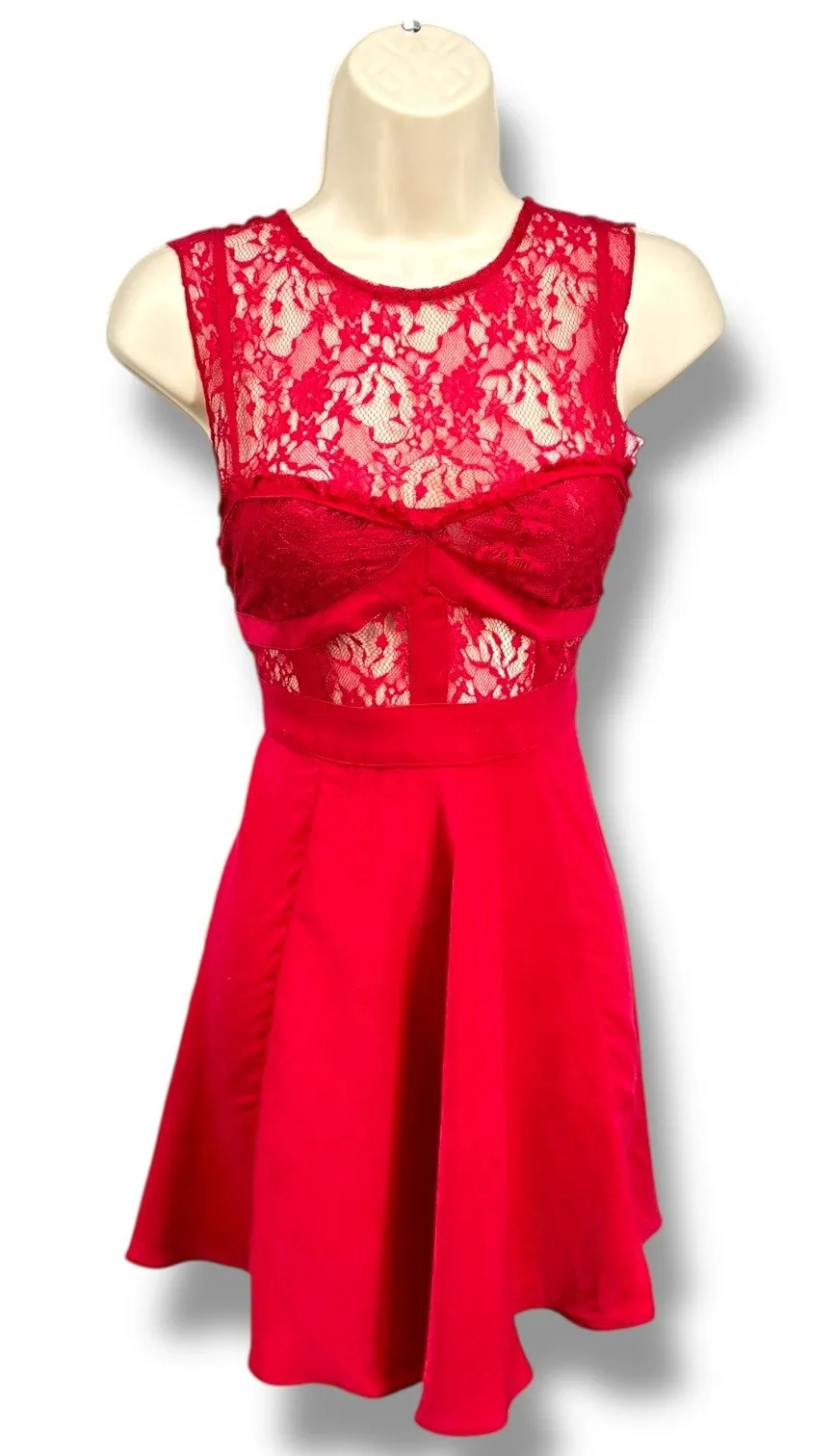 Free People Intimately red lace fit and flare dress in size XS. Features a sheer floral lace bodice... Show more