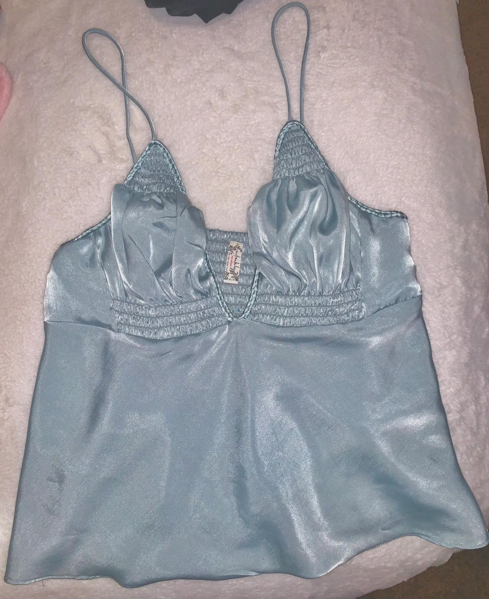 Super cute silky teal top in really nice condition!! Cute for going out, fits like a small except th... Show more
