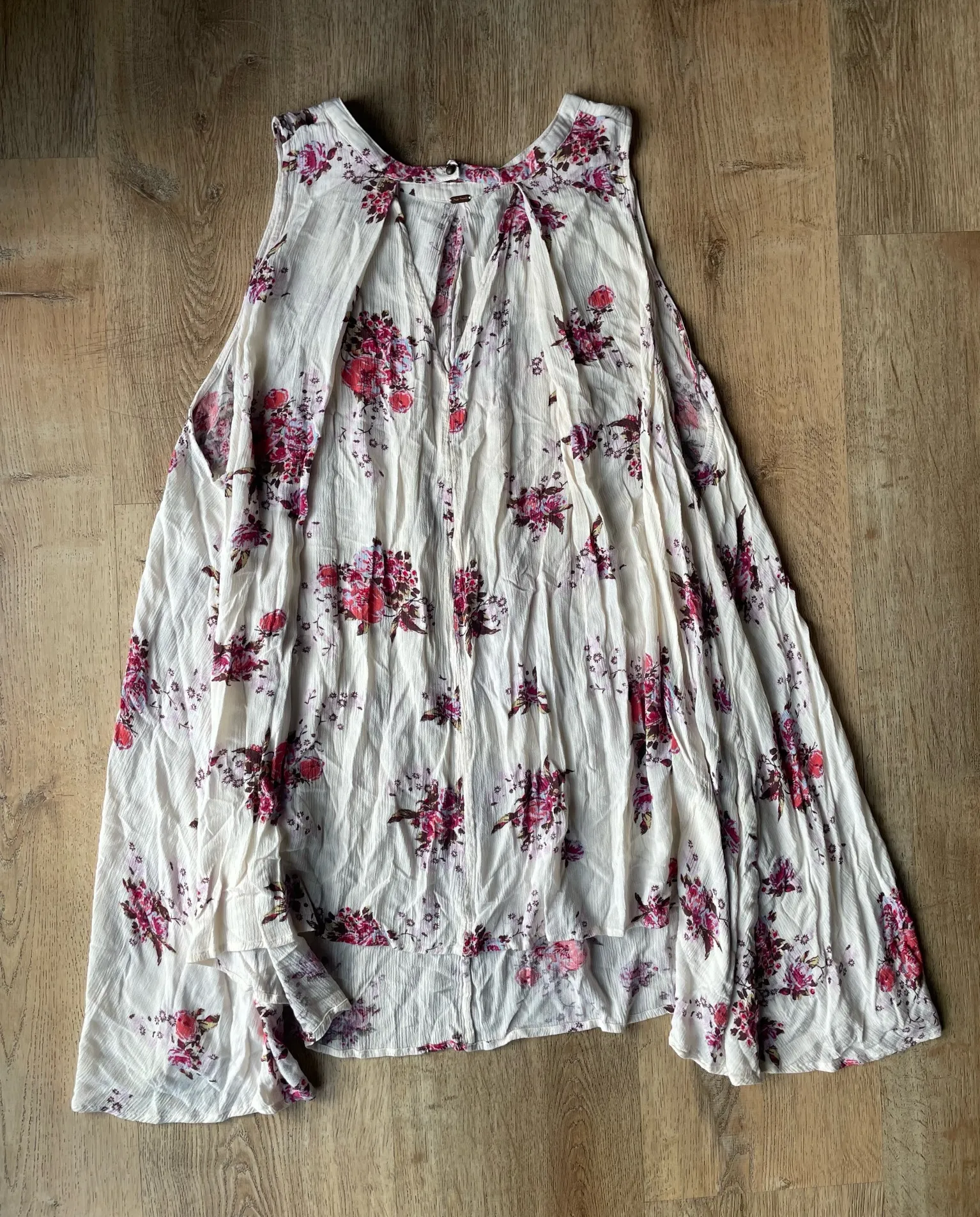 Free People Ivory Pink Floral Sleeveless Swing Mini Dress Size Large - $38 (67% Off Retail) - From Katherine