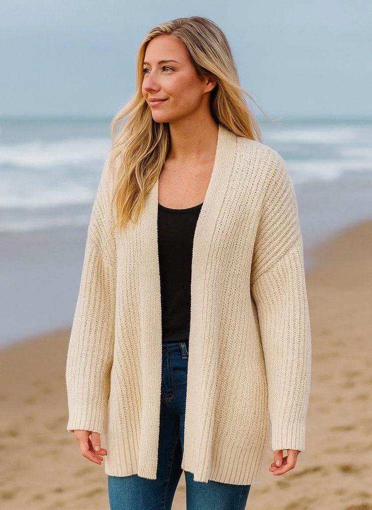 Free People Ivory Tight Knit Cardigan Coastal Resort Cozy Winter Holiday M Size M - $38 - From Casey