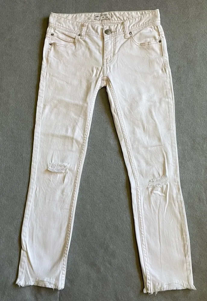 Stylish and edgy Free People women’s skinny jeans in size 25 x 24.5, featuring a clean white wash wi... Show more