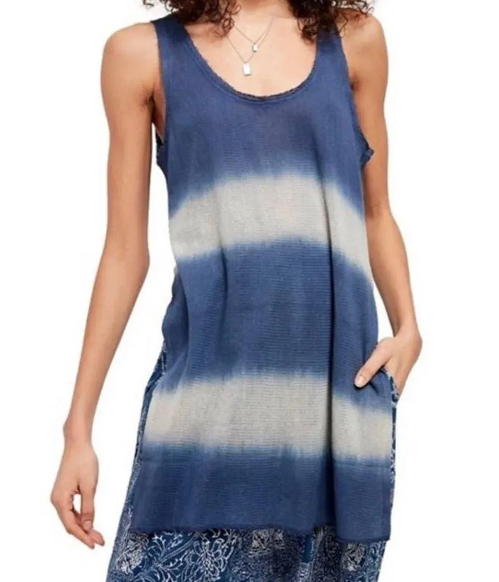 Free People Joni Out to Sea Navy Striped Tie Dye Long Side Slit Maxi Tee Tank Size: XS NEW, new with... Show more