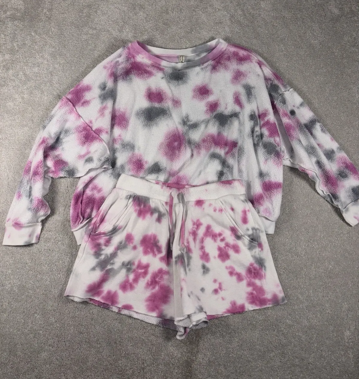 This Free People Kelly Tie Dye Sweatshirt Shorts Set in XS size features a playful pink color with a... Show more