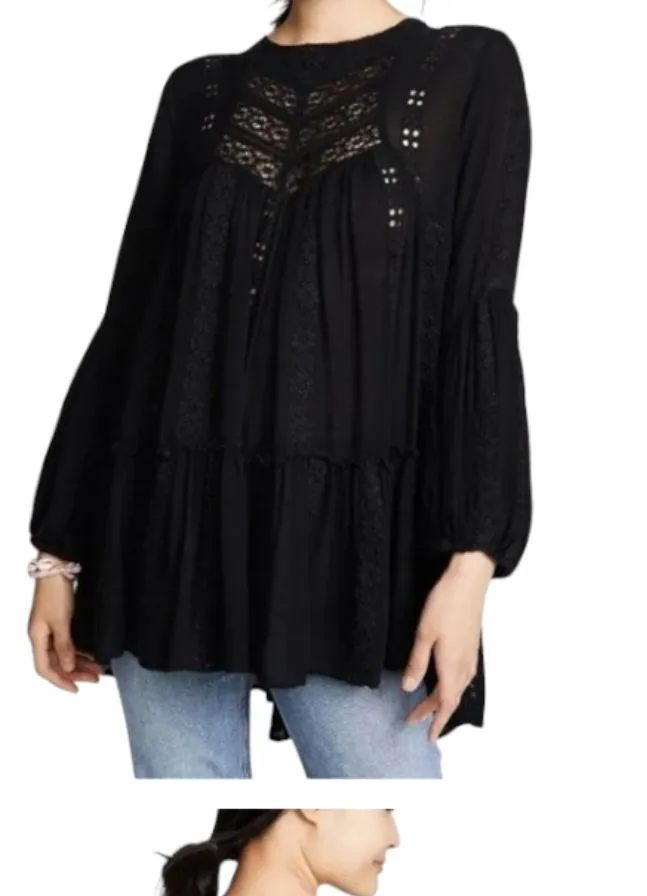 Free People Kiss Kiss Tunic Eyelet Boho Bohemian Flowy Oversized Black OB920119 Size XS Size: XS S... Show more