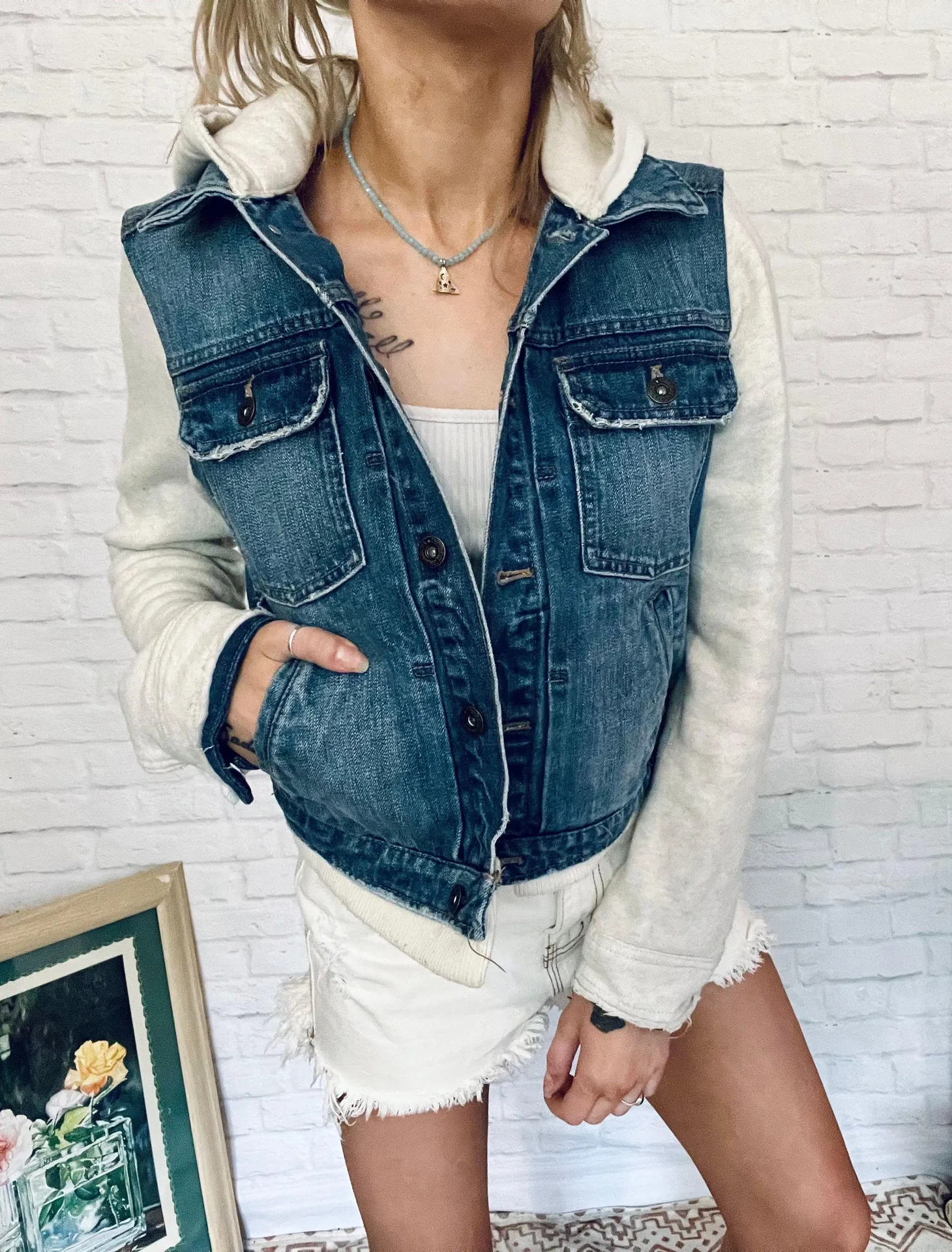 π Item: Knit Denim Jacket π Brand: Free People π Size: Small π Colour: Blue, Oatmeal π Feat... Show more