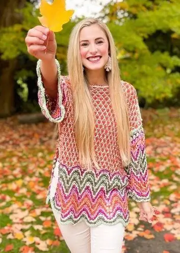 Boho style oversized colorful knit sweater with wide sleeves and side slits OMH1