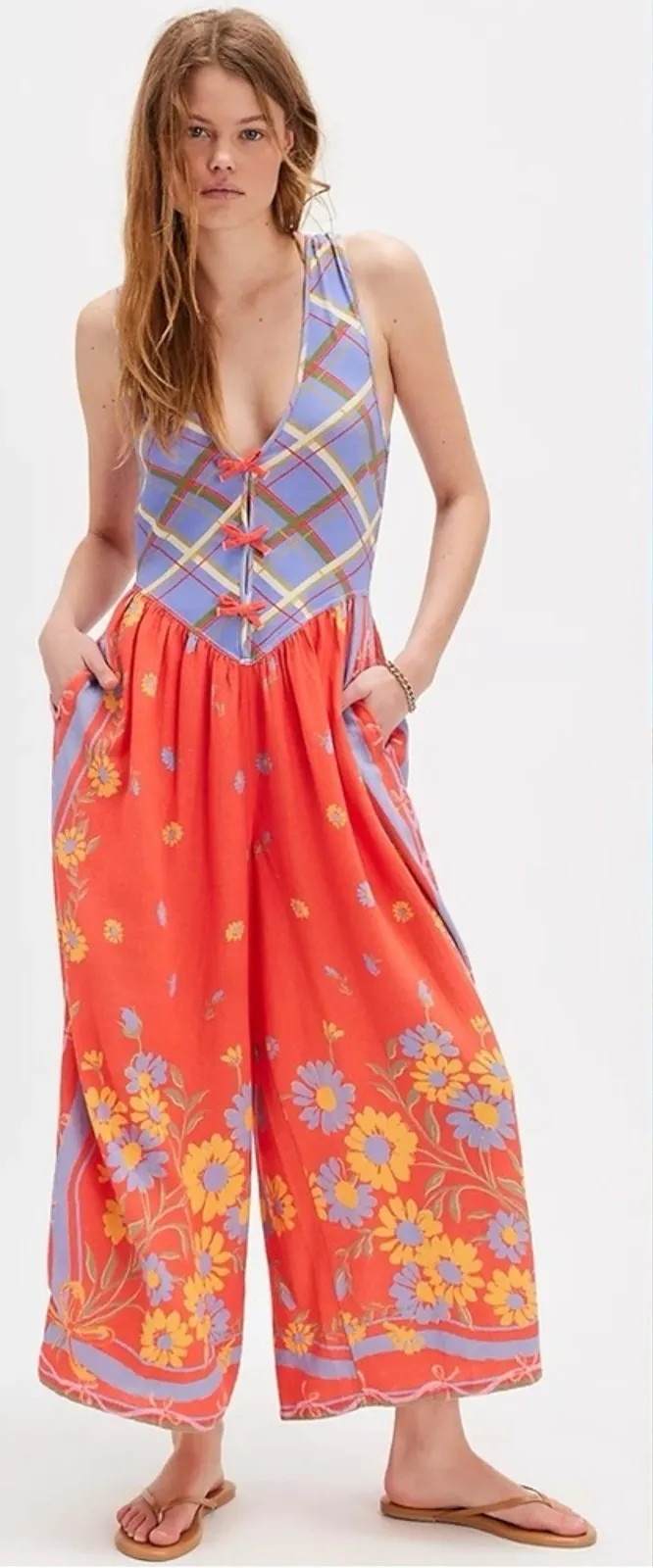 Free People Bali Honeydew Jumpsuit in Fiesta Combo NWT New With Tags Attached MSRP $228 Size Smal... Show more