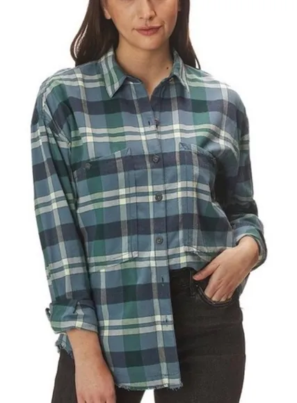 Free People | Loveland Plaid Frayed Hem Shirt *NWT XS 40% cotton 60% rayon Pit to pit 20 Shoulder to... Show more