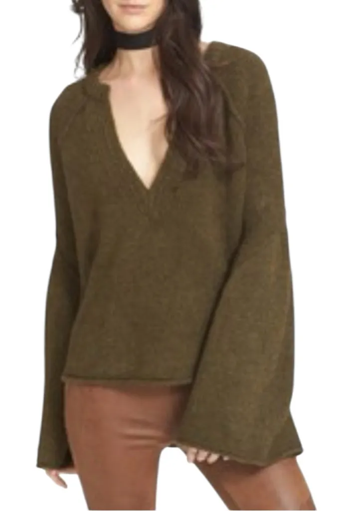 Pre-loved Free People “Lovely Lines” bell sleeve sweater in a soft hunter green marled knit. Feature... Show more