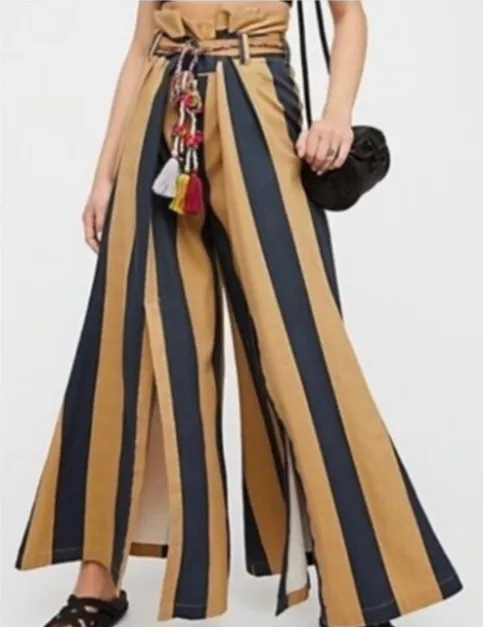 The product is a pair of Free People Majorie High Waist Palazzo Pants in a Striped Wide Leg Tie Boho... Show more