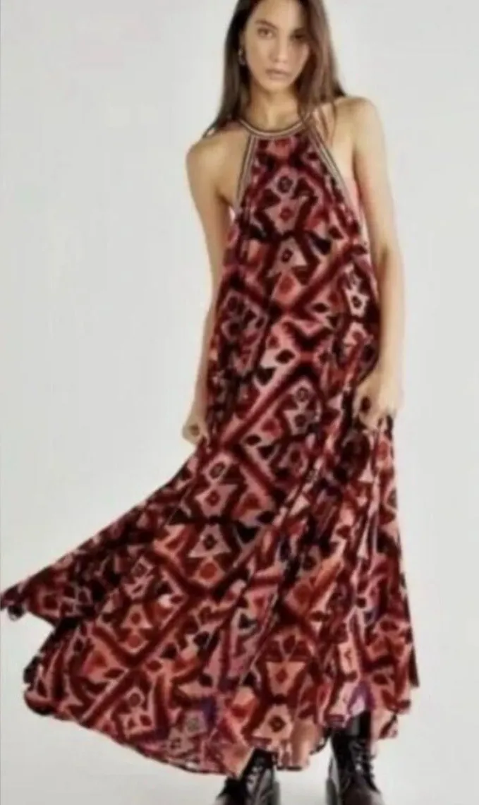 Free People Micah maxi dress crafted in a velvet burnout fabric with an allover geometric pattern. F... Show more