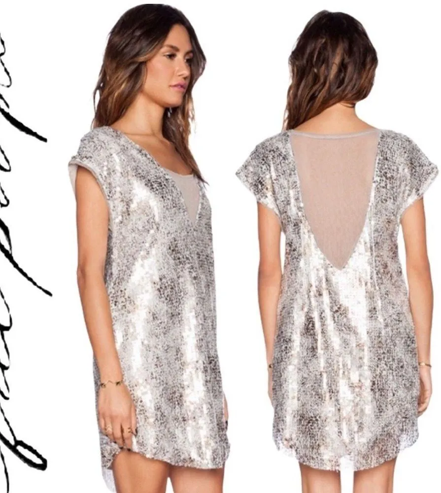Free People Midnight Dreamer Sequin Shattered Glass Mini Dress Women's Small Silver. Great textured... Show more
