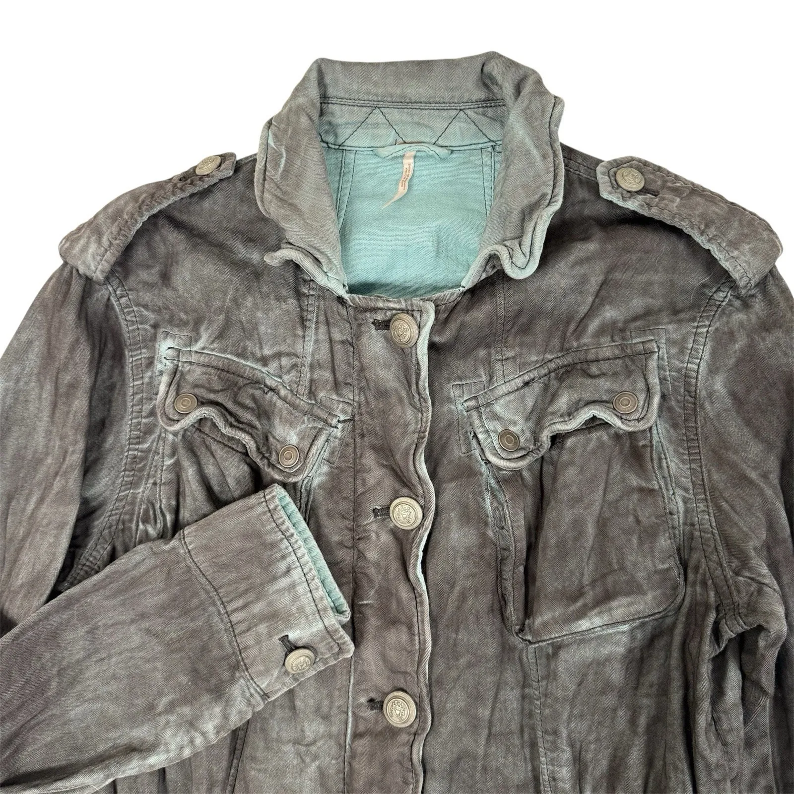 Free People Military Jacket Women's Size XS Gray and Blue Double Cloth Utility Coat Good preowned... Show more