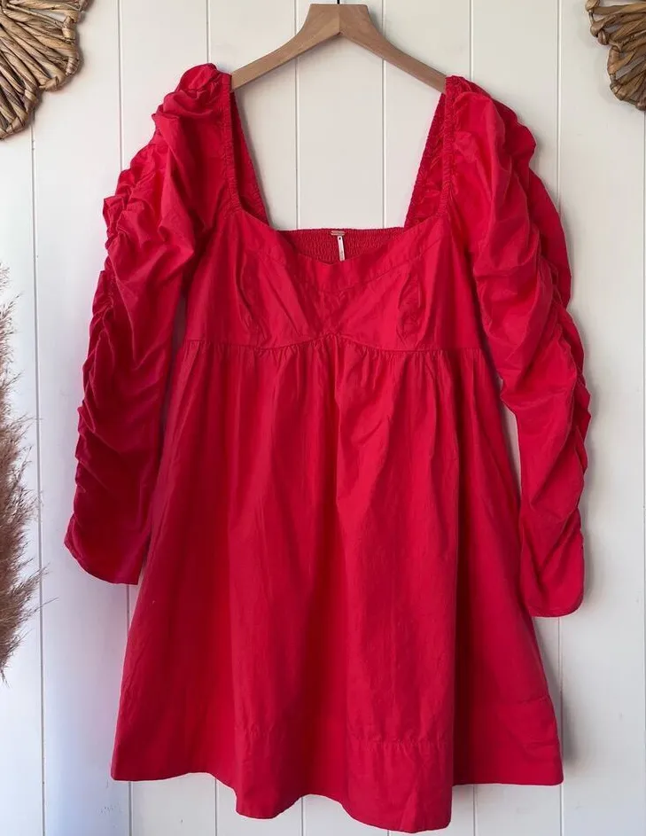 Free People dress mini babydoll cotton puff sleeves ruched pleated Condition: brand new without tag... Show more