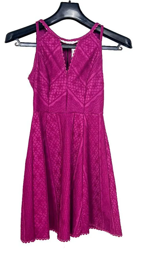 Free People Missed Connections Mini Dress in a vibrant magenta purple lace. Size 2. This boho-chic s... Show more