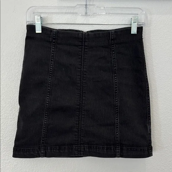 Free People ‘Modern Femme’ miniskirt. Size 6. Black denim material with exposed hemming detail. Fit... Show more