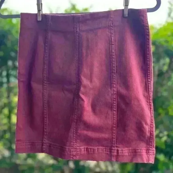 Feee People Mini Skirt Maroon Extremely soft denim Zip closure to back Made in Turkey Size Smal... Show more