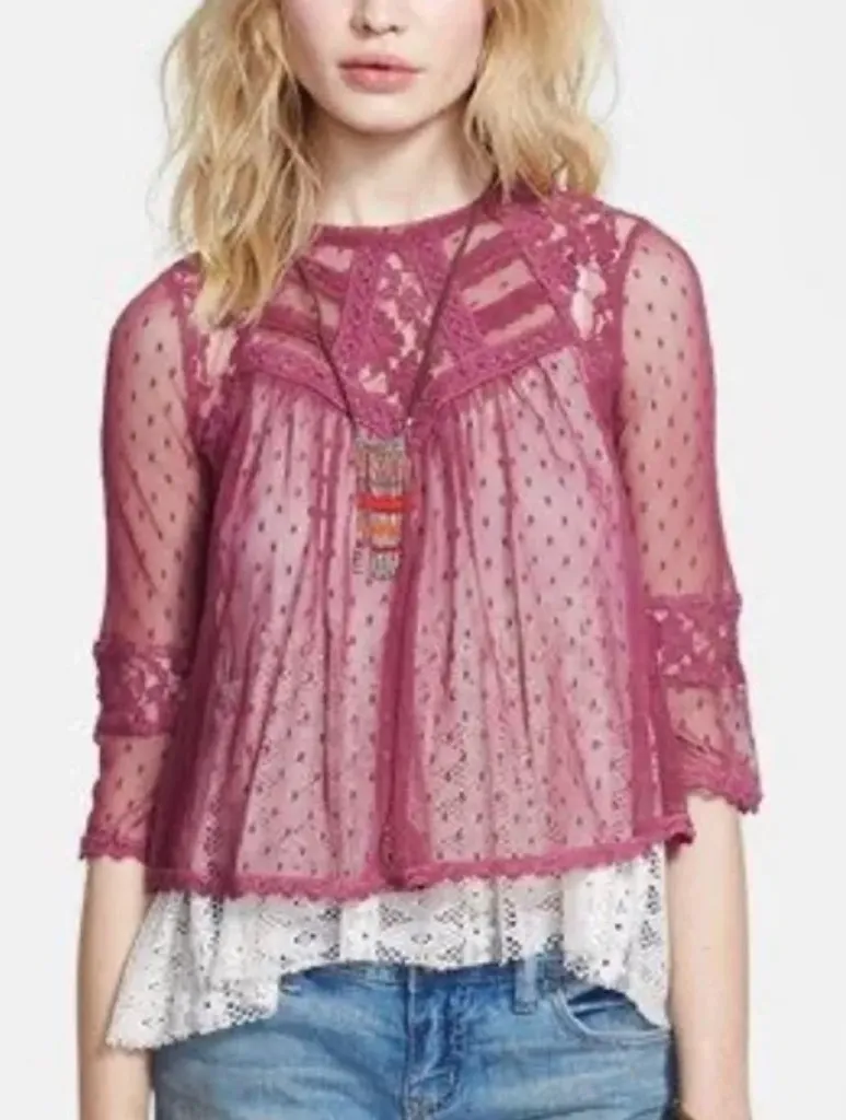I’m selling a Free People Modern Romance Sheer Lace Peplum Top in Rutabaga Size XS for $30. * Excel... Show more