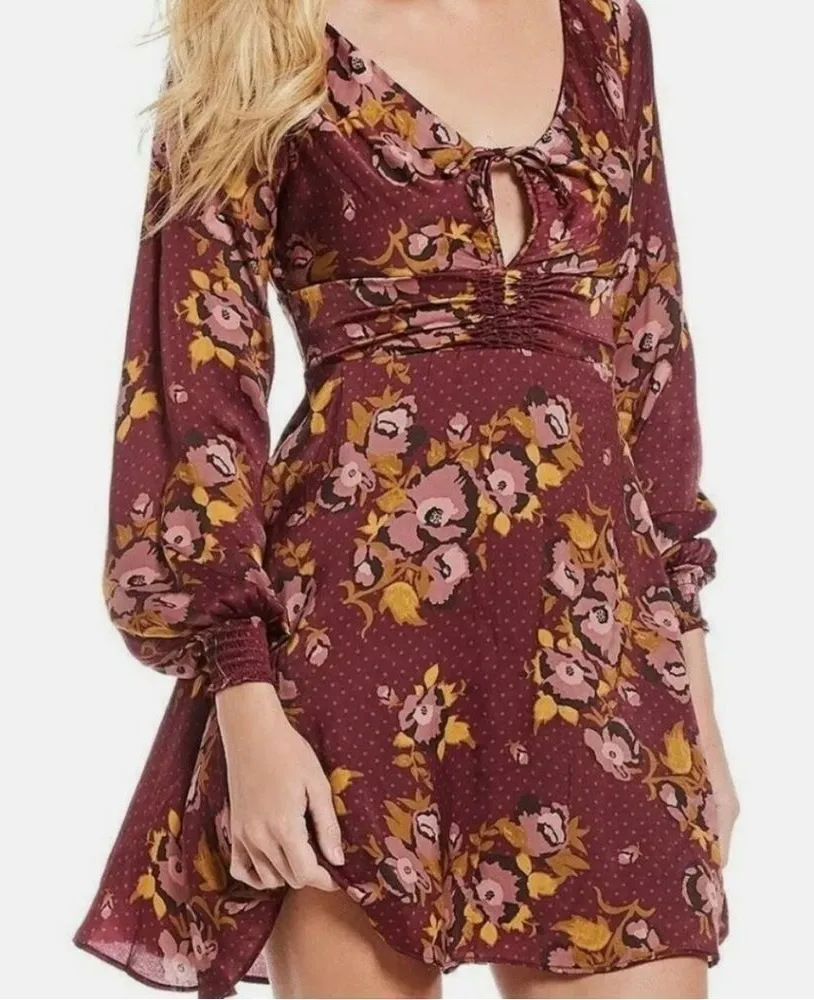 Free People Morning Light Long Sleeve Purple Maroon Floral Dress Size 4 Great condition. No rips, st... Show more
