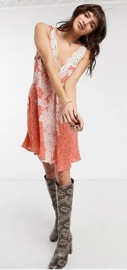 Excellent used condition. Free People slip dress in a vibrant coral and white floral print. Delicate... Show more