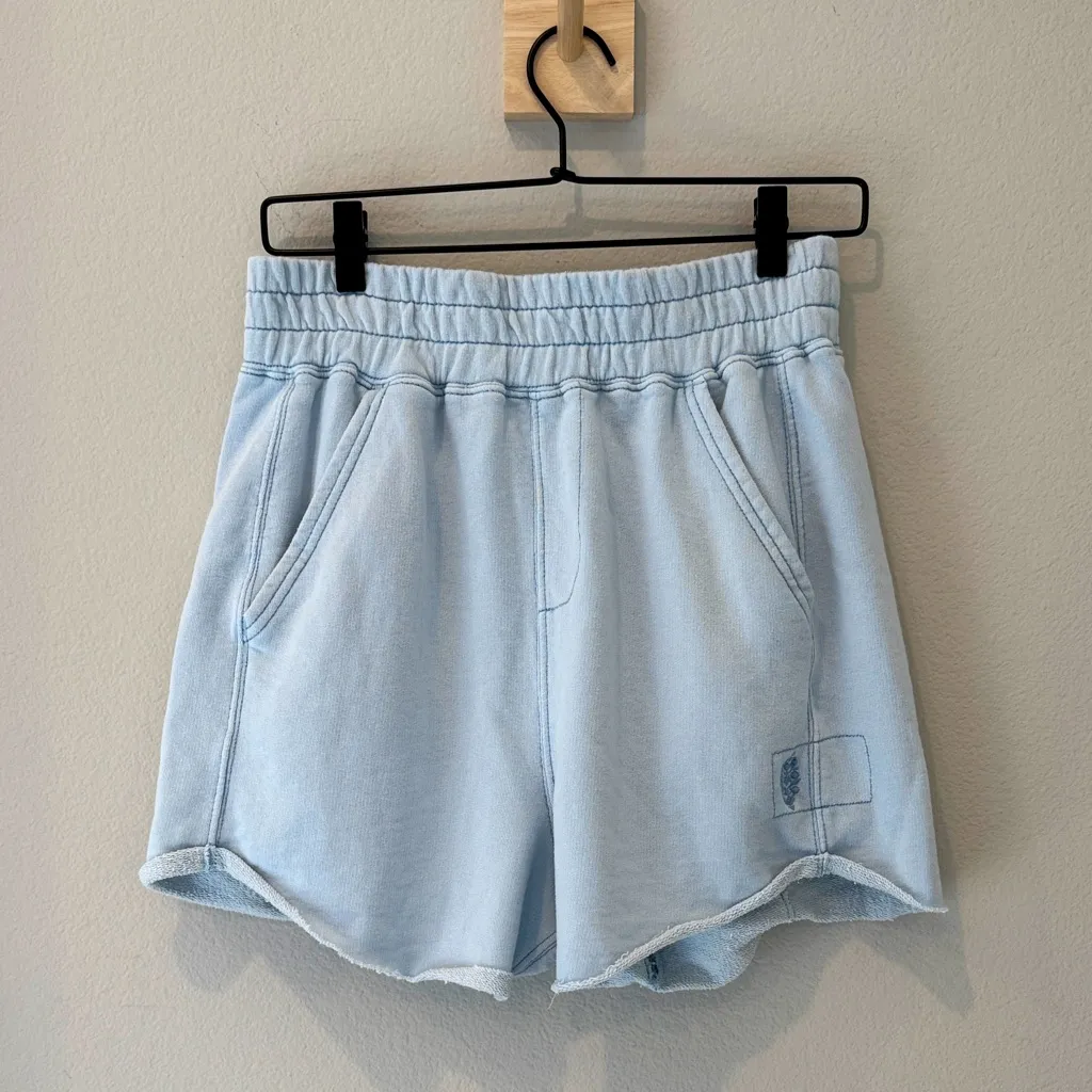 Sweatshirt material high waist shorts with a relaxed baggy fit. Soft fabric and stylish design. Embroidered logo. Ideal for everyday wear or a lowkey workout! Waist is 14”. Fast Shipping!