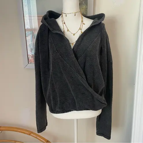 — Intentionally textured with some extra fuzzing wear Dark charcoal grey — Surplice wrap crossover... Show more