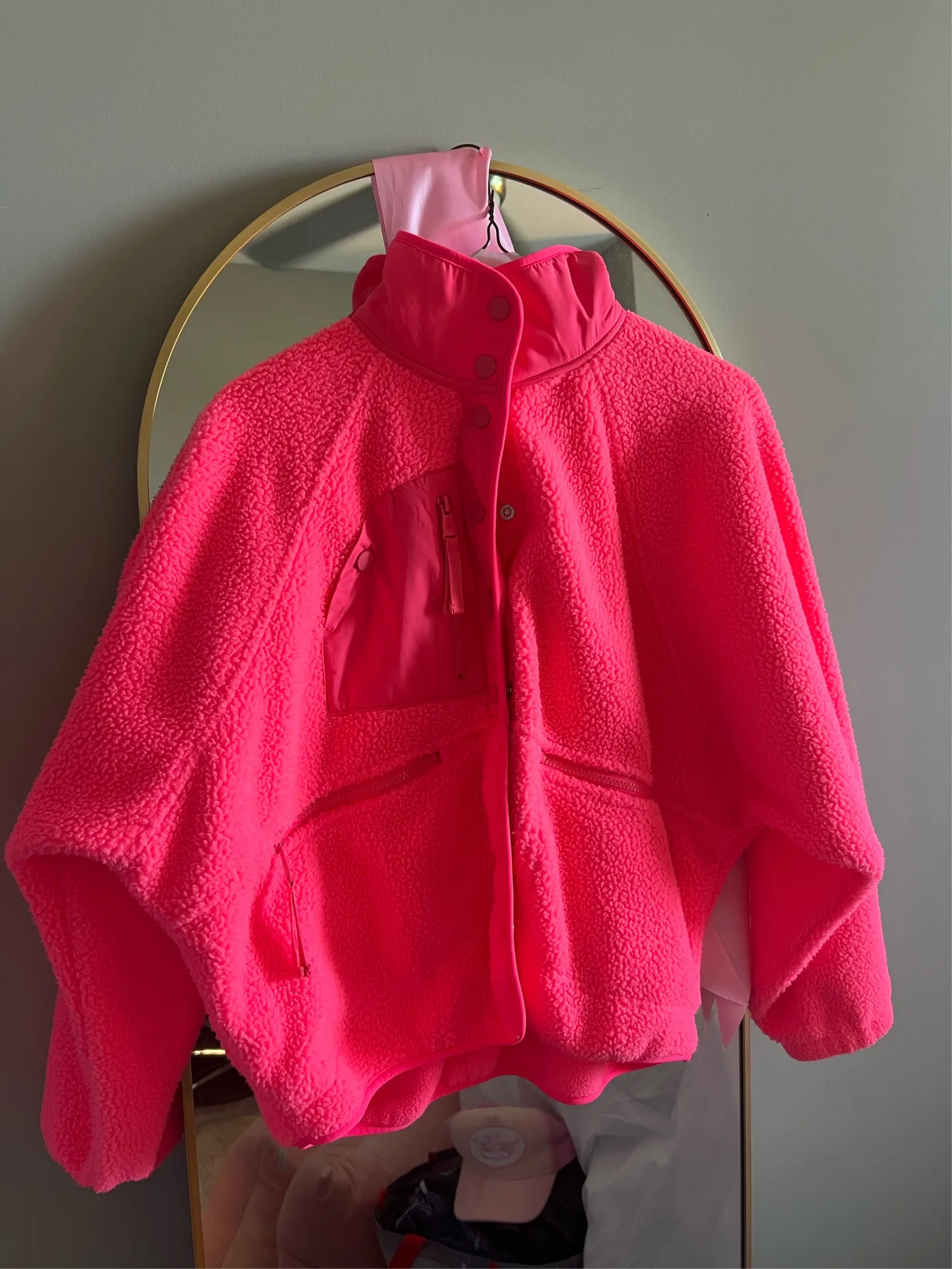 Gorgeous hot pink fleece free people movement jacket! A little over sized and really comfy and cozy!
