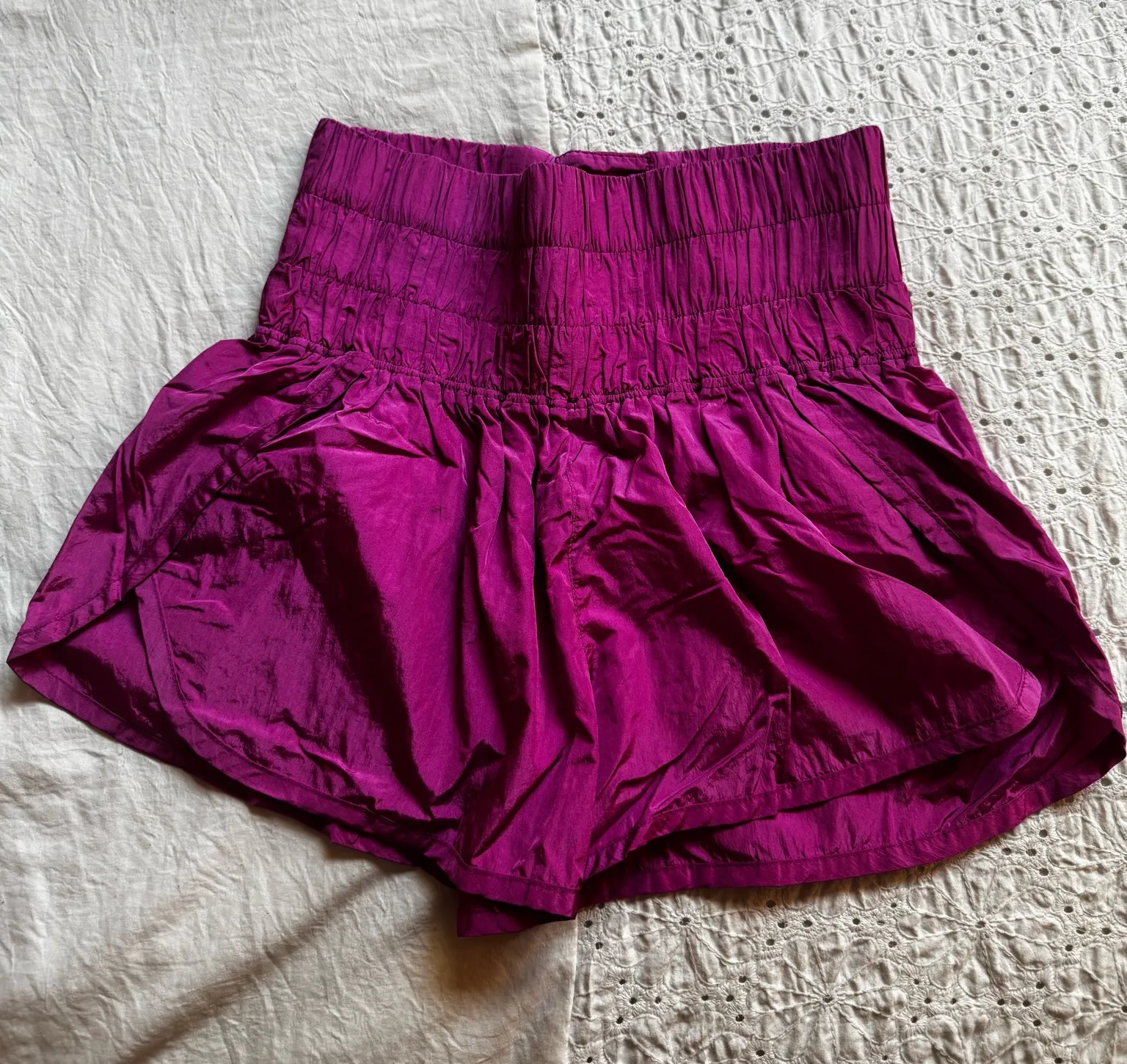 Set of three shorts with smocked waist Includes pinkish, orange and purple colors Size small Free Pe... Show more