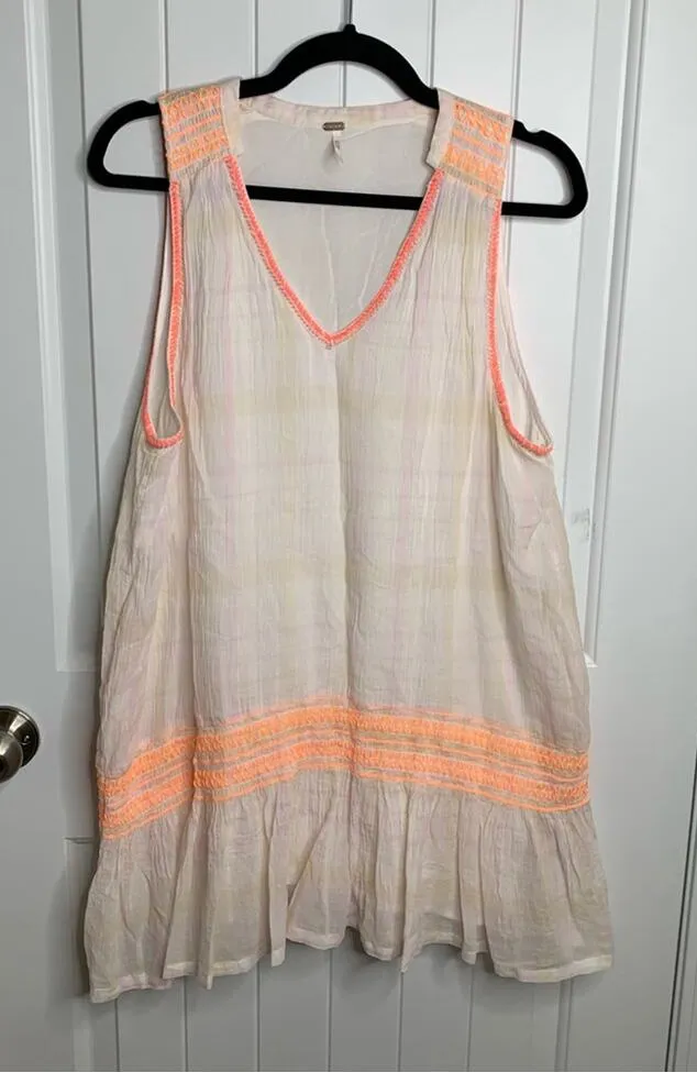 Subtle plaid pattern with neon trim amocked drop waist. Size XS, runs oversized Great condition.