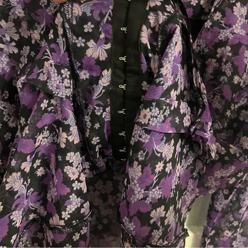 Free People Nina purple floral semi sheer long sleeve blouse in size L. Hidden hook & eye closure do... Show more