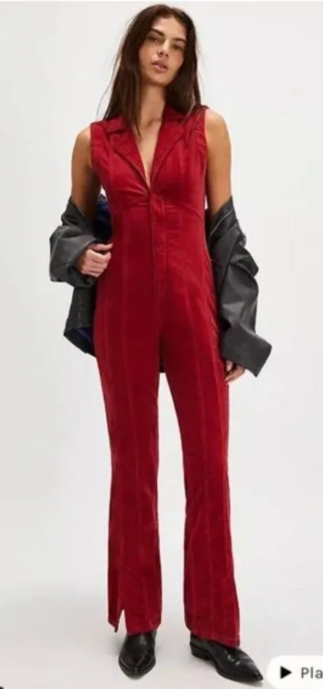Fit: Slim at the bodice and thigh with flared leg design Features: Front zip-up closure, plunge neck... Show more
