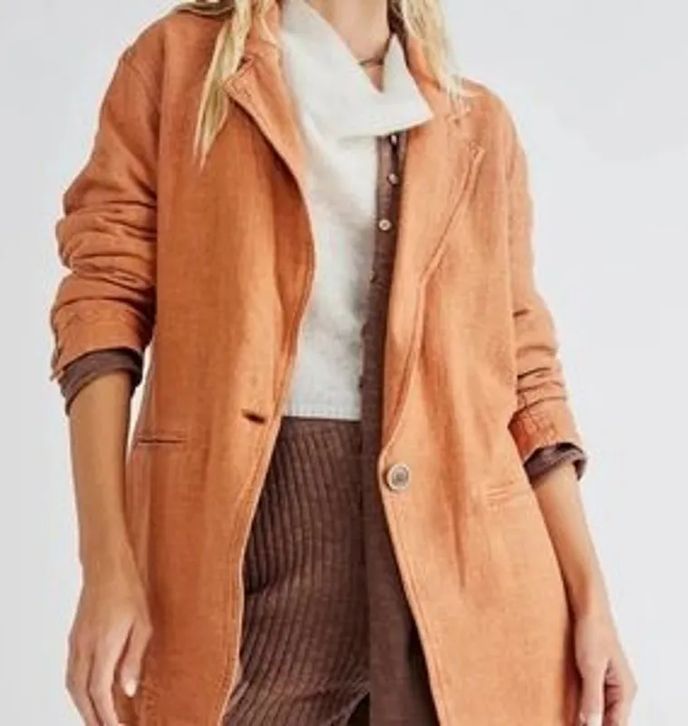 Free People We The Free Brown Button Linen Cotton Blend Heavy Blazer Jacket. Linen Cotton Blend, Fr... Show more