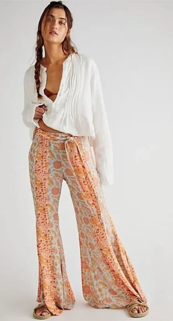 Never worn! Billowy and effortless flare pants featured in a low-rise silhouette with adjustable wai... Show more