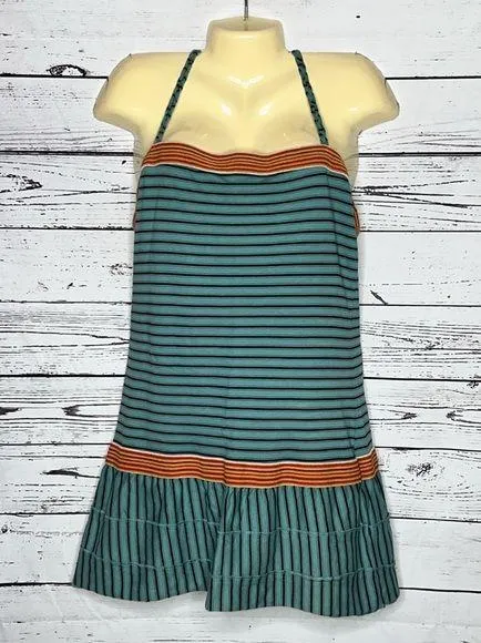 Free People Size L Sea Blue Stripe Tunic Mini Dress. Tiered Ruffle Hemline. Braided Strap. Sleeveles... Show more