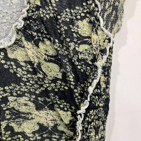 Trendy Free People “Oh My Baby” ruched cropped top in animal print mesh fabric. Features lettuce-edg... Show more