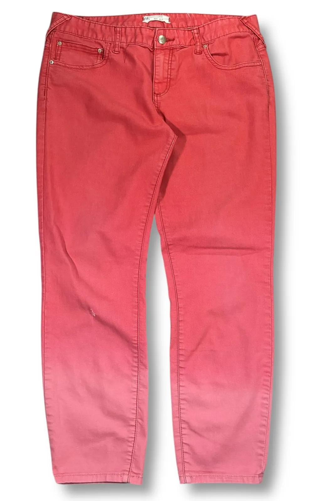 Good preowned condition, no rips or stains. Free People skinny jeans in a coral to pink ombre wash... Show more