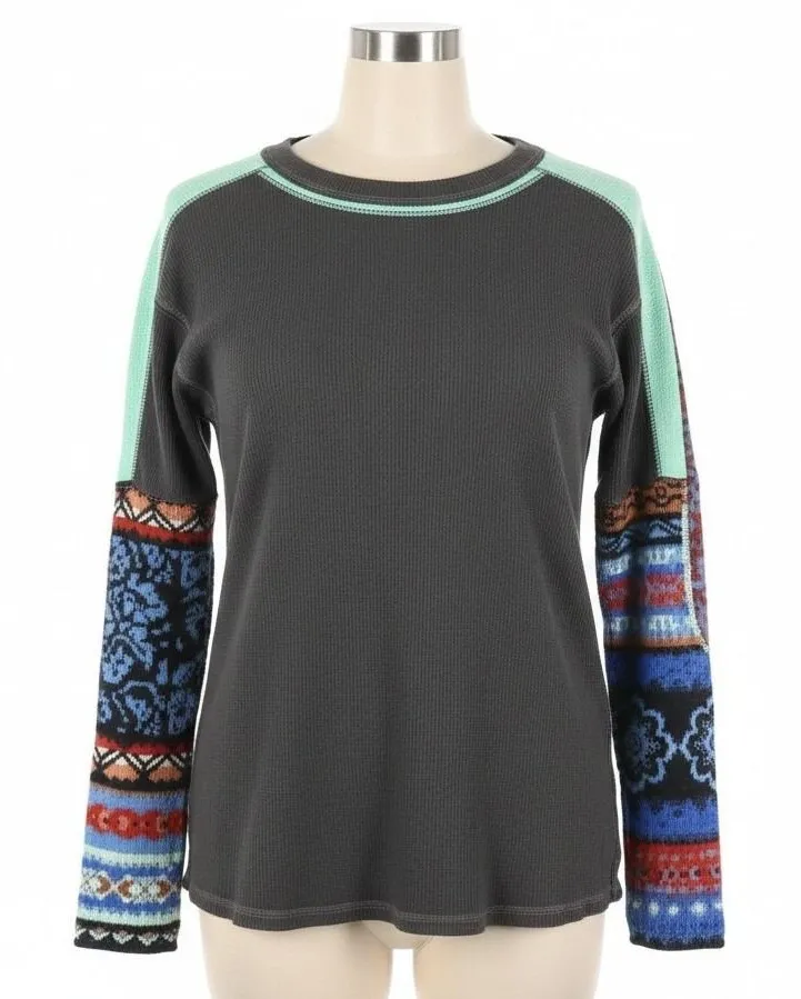 Free People On My Way Cuff Thermal Top Boho Mixed Print Fair Isle Knit Small Women's Size Small Wa... Show more
